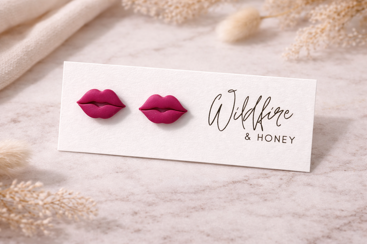 A little flirty, a little sweet—these Lip Love Stud Earrings are handcrafted from polymer clay and designed to make a subtle statement. Sculpted with soft dimension and finished in a blush pink or rich fuchsia, they add just the right touch of charm to your everyday look.